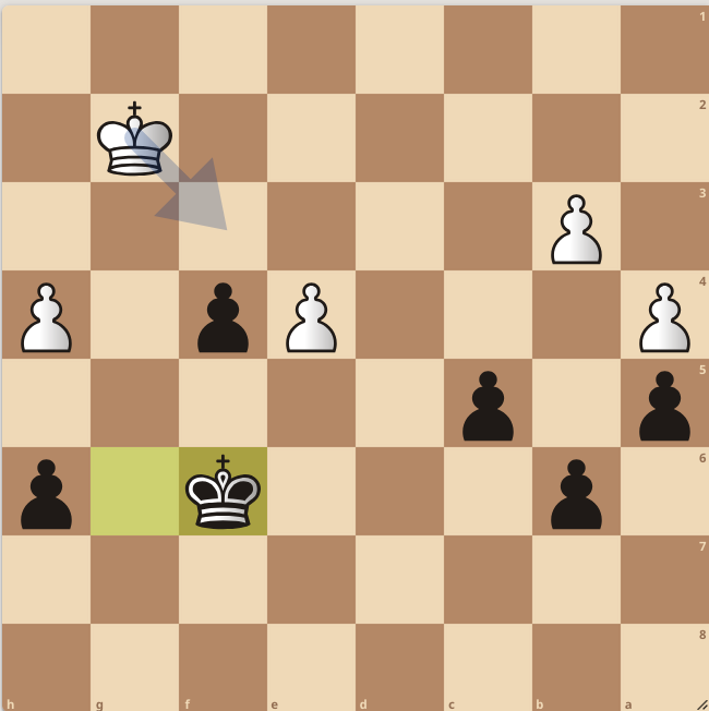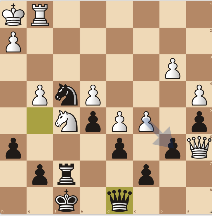 Beide heren proberen uit te vissen om een verzwakking te creëren bij hun tegenstander. Hieronder is te zien dat na 31 zetten de zwarte dame naar de achterste lijn is gegaan.