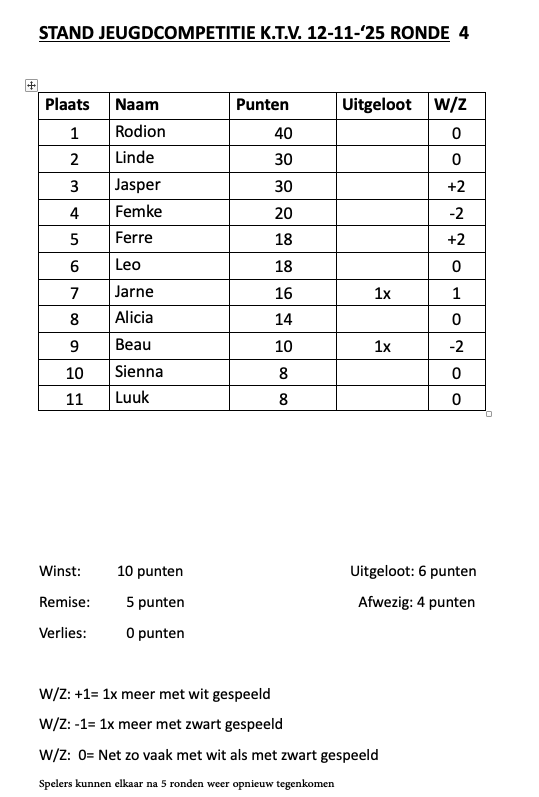 Jeugdcompetitie ronde 4