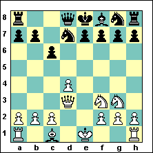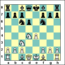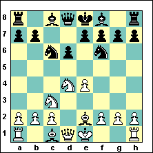 (Open spelen)![]() 1...e7-e5 2.Pg1-f3 de pion op veld e5 wordt aangevallen 2...Pb8-c6 dat ziet zwart natuurlijk, en zijn paard verdedigt de pion e5 3.Lf1-c4 dat is de zet om te onthouden; die 'hoort' er echt bij 3...Lf8-c5 zwart denkt: dat kan ik ook met m'n loper. Wat is de volgende zet van Wit, denk je? 4. 4...Pg8-f6 oei, een gemeen zetje van zwart! zie je het? 5.Pb1-c3 Wit ziet het gelukkig wel! 5... 6.d2-d3 d7-d6 7.Lc1-g5 Pf6 gepend! Vierpaardenspel (Open spelen) ![]() 2.Pg1-f3 Die zet hebben we meer gezien. Die moet dus wel goed zijn. 2...Pb8-c6 3.Pb1-c3 Weer een paard! 3...Pg8-f6 En dat is het 4e paard. Nou snap je de naam Vierpaardenspel? 4.d2-d4 Dit heet Schots Vierpaardenspel! Valt pion e5 aan! Wit kan ook anders [4.Lf1-b5 (Spaans Vierpaardenspel)] 4...e5xd4 Zwart denkt: toe maar. 5.Pf3xd4 d7-d6 wil e4-e5 tegenhouden. |