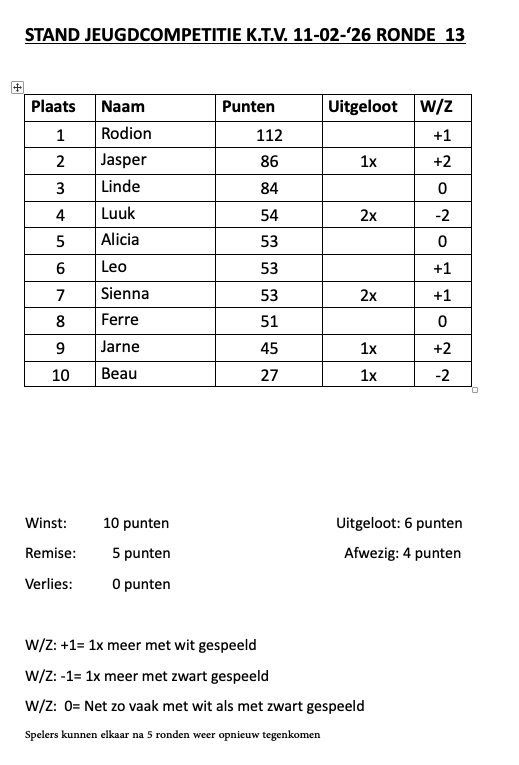 Jeugdcompetitie ronde 13
