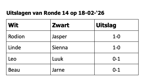 Jeugdcompetitie ronde 14